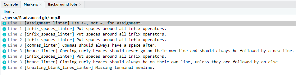 Contrôlez la qualité de votre code en utilisant un linter, par exemple, lintr