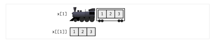 [ renvoie toujours une liste[[ renvoie un élément de la liste$ renvoie un élément de la liste si la liste est nommée